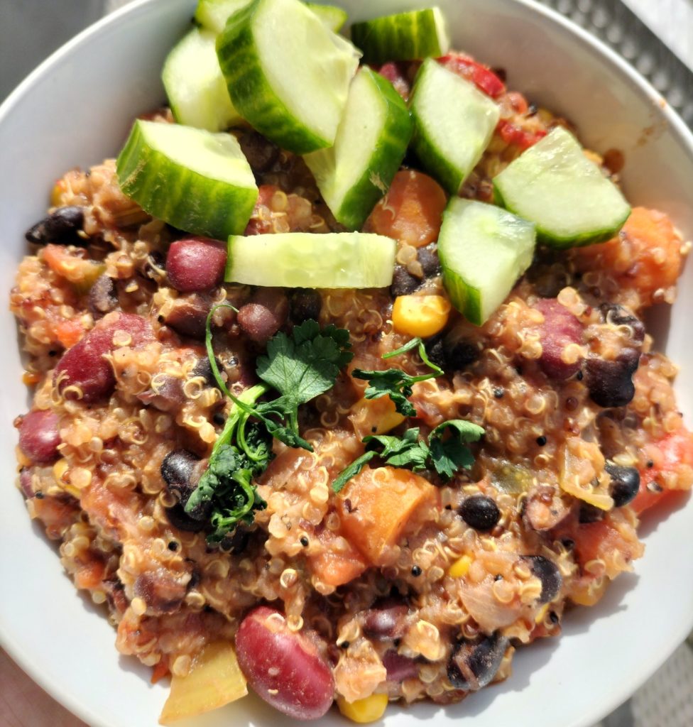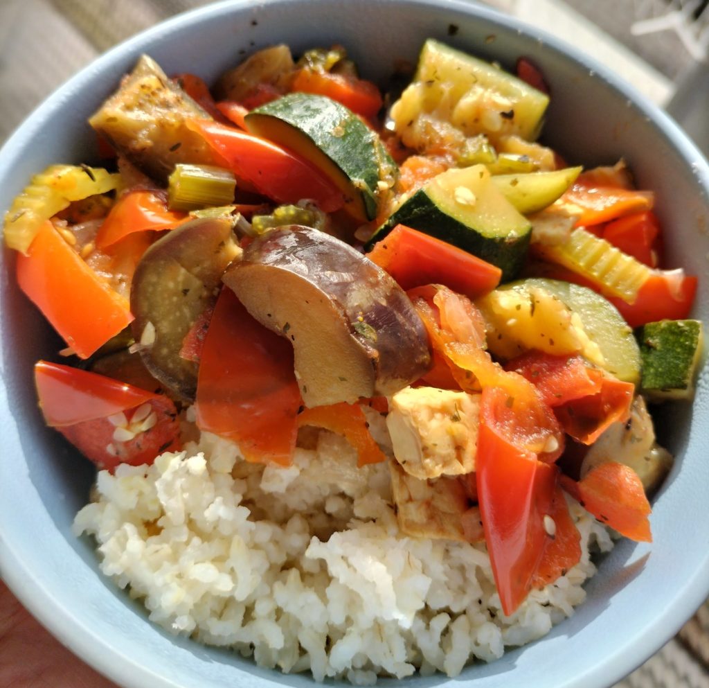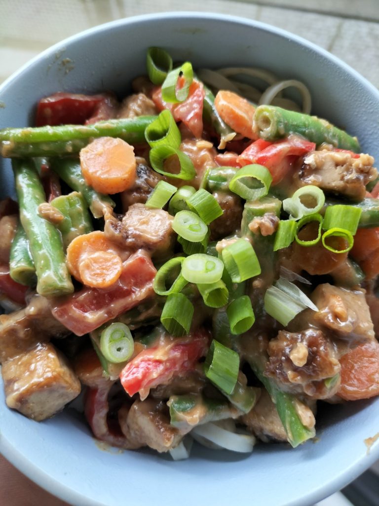 Wok de groentenspaghetti een paar minuten in een beetje groentenbouillion en serveer deze met de pestosaus en geroosterde kikkererwten. Recept voor vegan pestosaus: Ingrediënten: Instructies: Geroosterde kikkererwten: Ingrediënten: Instructies: